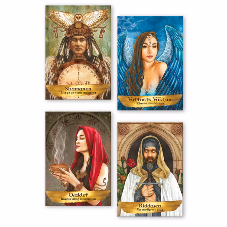 Orakelkorten "Änglar och Förfäder" består av 55 kort. Varje kort erbjuder en möjlighet att komma i kontakt med de högre makterna och söka vägledning från änglar, förfäder och jorden själv. Med motiv från kelterna, indianerna och andra ursprungskulturer förenar de här vackra orakelkorten visdomen från alla dessa kulturer och bygger en bro mellan våra världar.