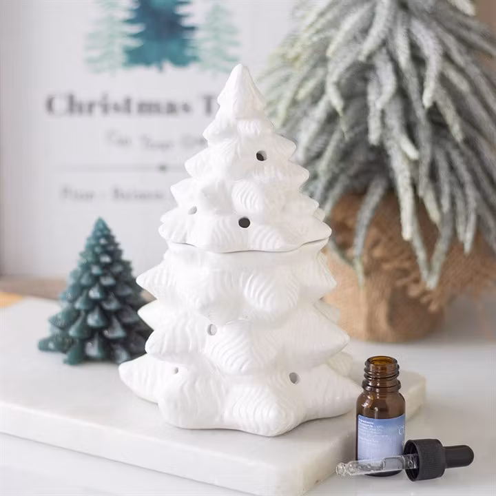 Elegant vit aromalampa i form av en gran som sprider ett stämningsfullt sken. Använd med doftolja eller vaxkaka för att fylla hemmet med härliga doft. Ta alltid av locket vid användning.
