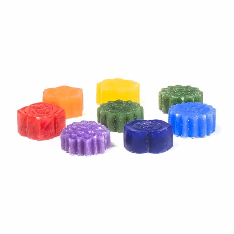 Dessadoftvax är skapade för att sprida stämning, doft och närvaro i hemmet. Varje ask innehåller 7 doftvaxer kopplade till de sju chakrana – plus 1 extra på köpet, doftsatta med rena eteriska oljor och tillverkade av 100 % vegetabiliskt palmvax från hållbart jordbruk.