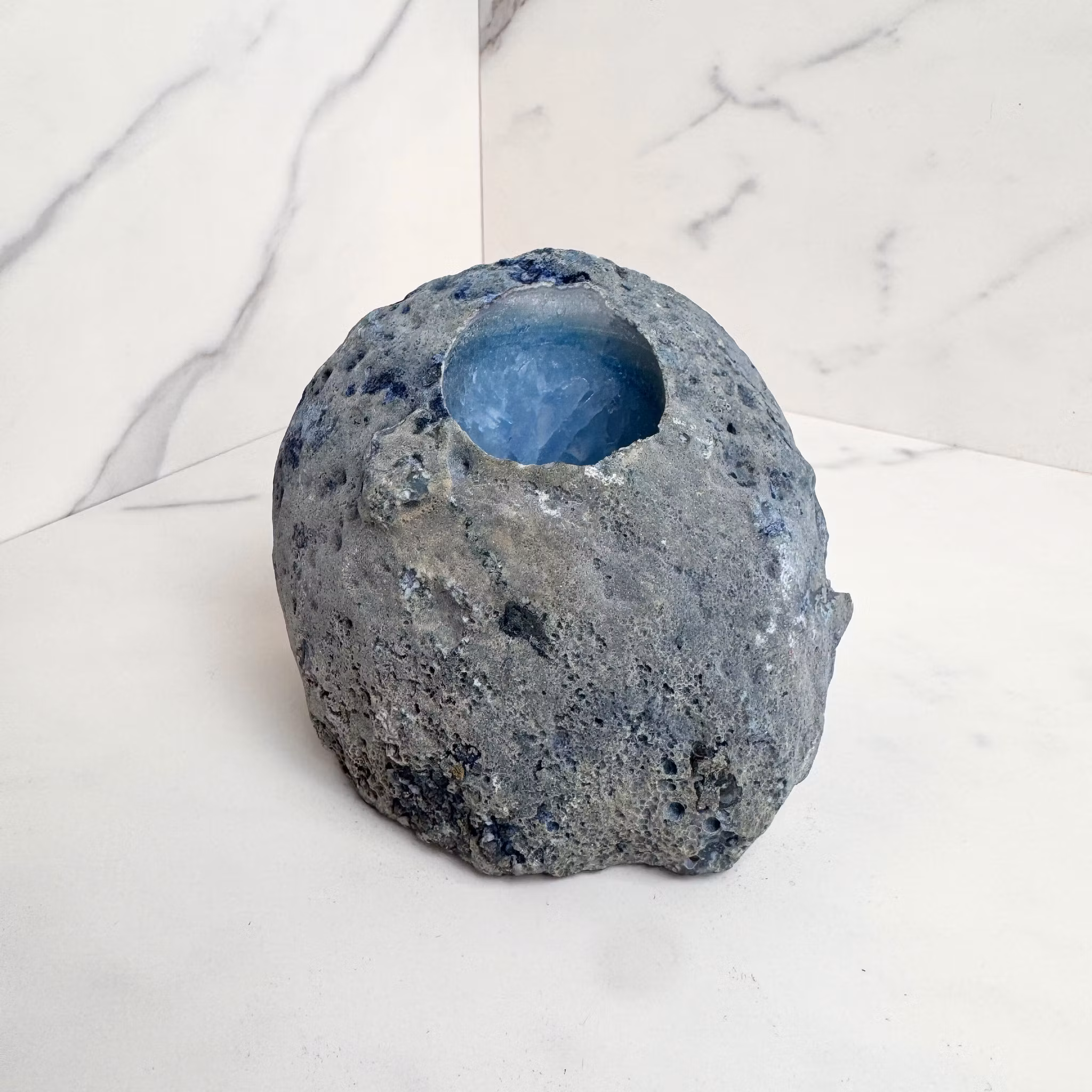 Varje ljuslykta är unik i färg, mönster och form. Agatens karaktäristiska band och cirklar gör varje exemplar till ett personligt inredningsobjekt som kombinerar naturens skönhet med en stillsam, beskyddande känsla. En uppskattad detalj i hemmet och en fin gåva till någon som värdesätter lugn och balans.
