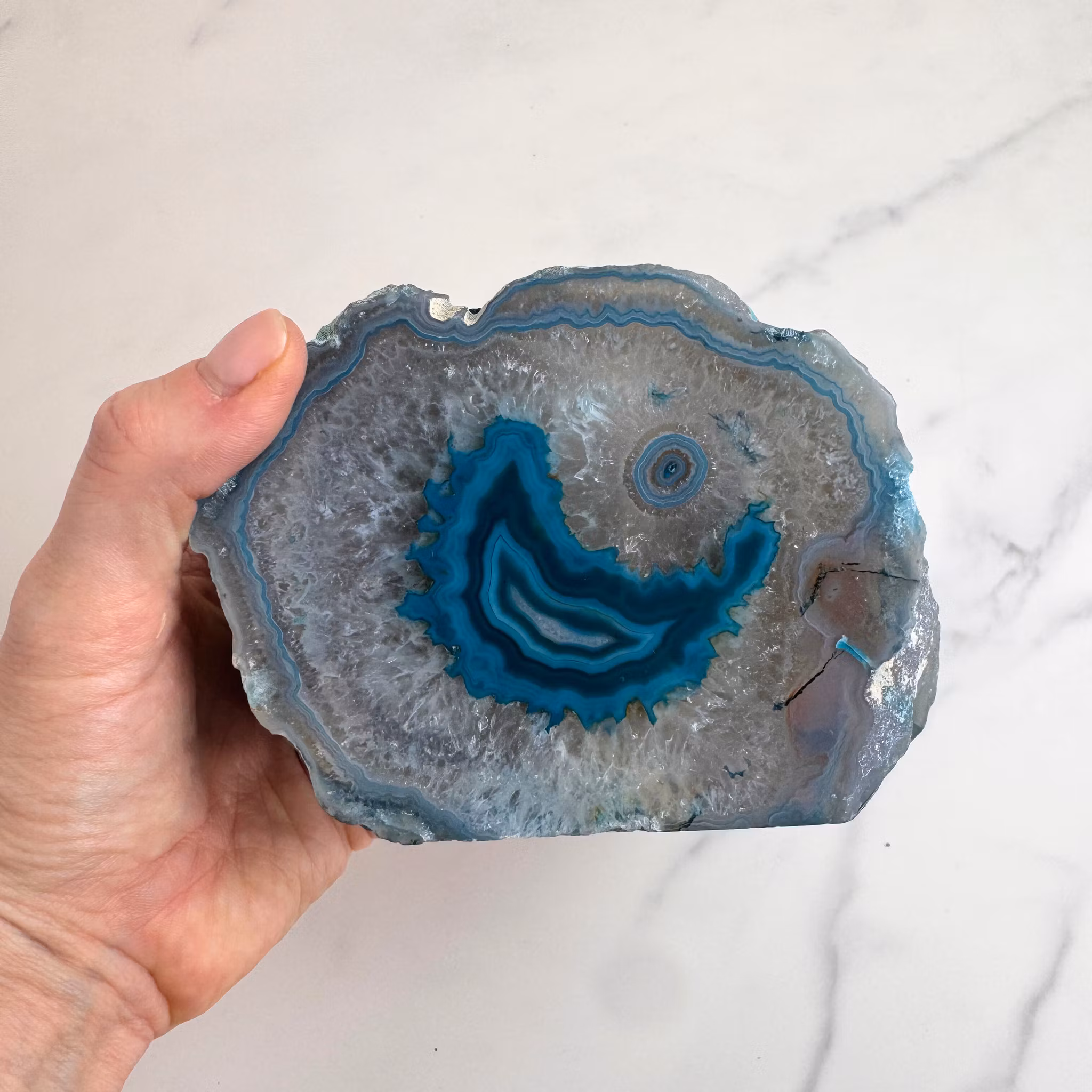 Varje ljuslykta är unik i färg, mönster och form. Agatens karaktäristiska band och cirklar gör varje exemplar till ett personligt inredningsobjekt som kombinerar naturens skönhet med en stillsam, beskyddande känsla. En uppskattad detalj i hemmet och en fin gåva till någon som värdesätter lugn och balans.