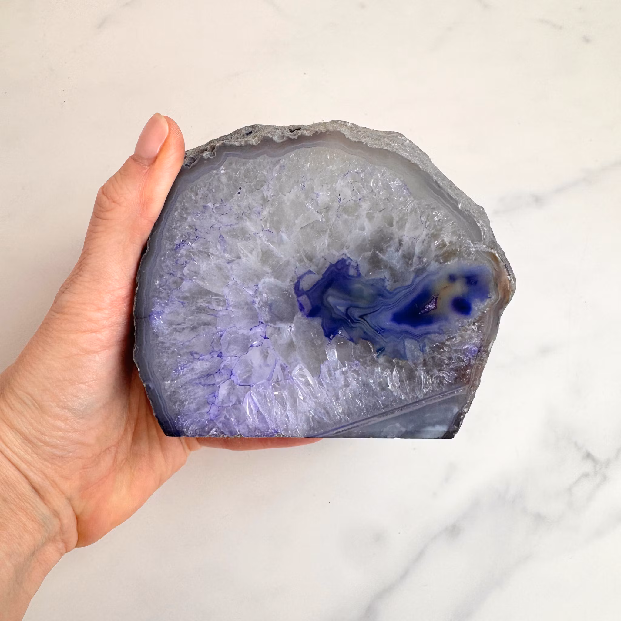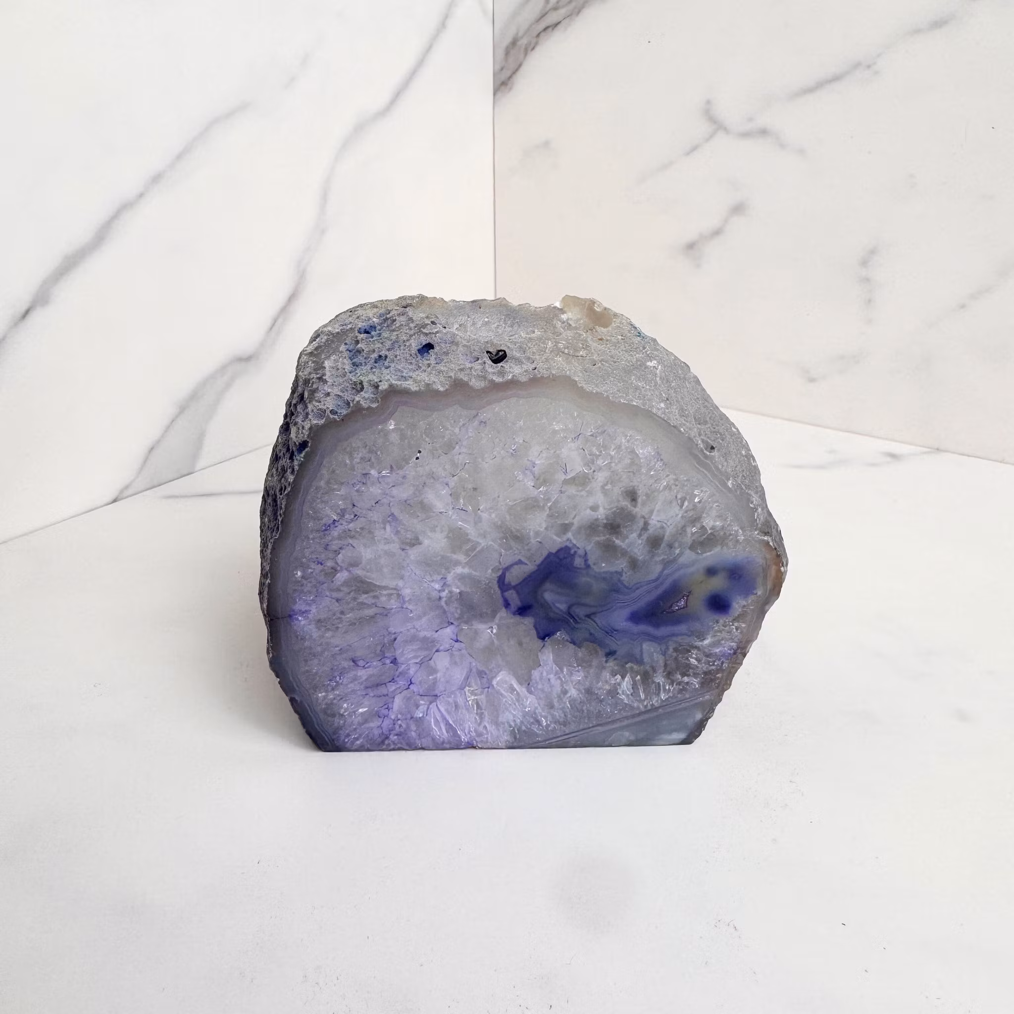 Varje ljuslykta är unik i färg, mönster och form. Agatens karaktäristiska band och cirklar gör varje exemplar till ett personligt inredningsobjekt som kombinerar naturens skönhet med en stillsam, beskyddande känsla. En uppskattad detalj i hemmet och en fin gåva till någon som värdesätter lugn och balans.