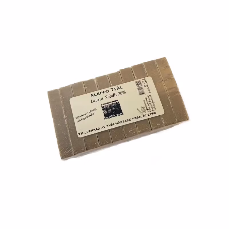 Aleppotvål traditionell med 20% lagerolja. 10 stycken tvålar om 20 gram vardera. Perfekt att använda som gästtvål, eller att ta med på resan. Tvålen är tillverkad av olivolja och lagerbärsolja som ger tvålen riktigt många fina egenskaper! Fungerar även att använda till hårtvätt.