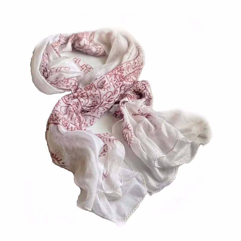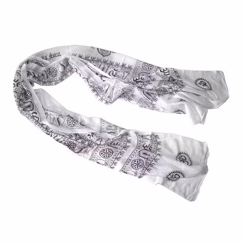 Klassisk sjal från Indien. Ram Nani, vit. Välj mellan mönster i svart eller rött.