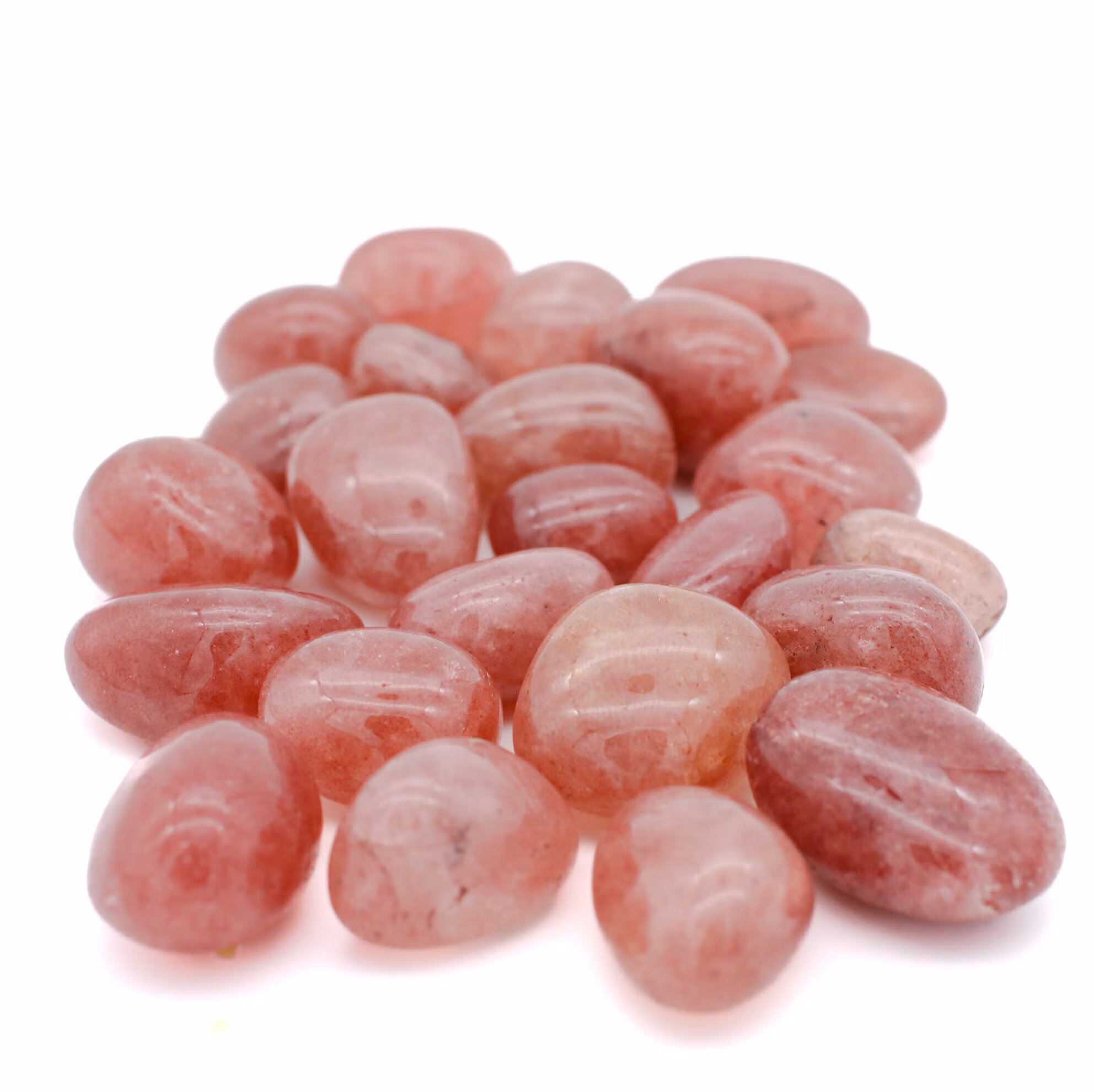 Jordgubbskvarts är en kristall som traditionellt förknippas med kärlek, glädje och ett öppet hjärta. Den används av många som en påminnelse om självkärlek, omtanke och känslomässig närvaro i vardagen.