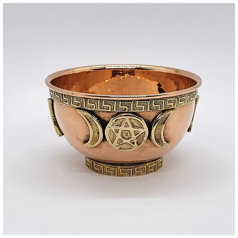 Rökelseskål av koppar, med Triple Moon-dekoration av mässing. Används till örtrökelser och resin.