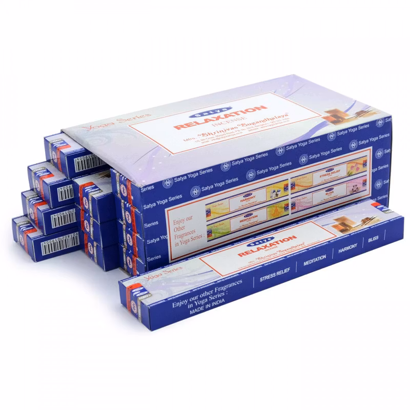 Satya Relaxation rökelse i storpack från Yoga Series har en mild, rund och avslappnande doft med subtila inslag av blommor och trä. Doften är skapad för att hjälpa dig att varva ner och skapa en lugn, harmonisk atmosfär i hemmet.