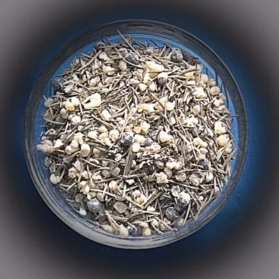 Blandningen är tillverkad enligt ett äldre traditionellt recept och består av naturliga hartser och örter som tillsammans ger en varm och mjuk doft.
