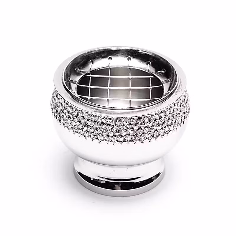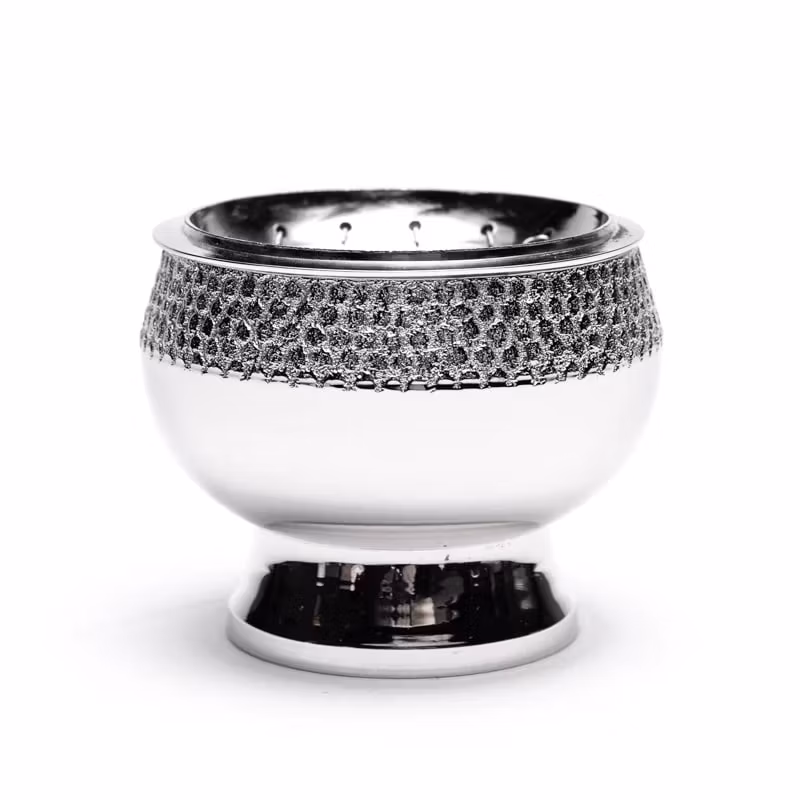 Rökelsekärl eller rökelsebrännare av nickelpläterad mässing. Passar för att bränna rökelse eller örter med kol, med eller utan rökelsesand.