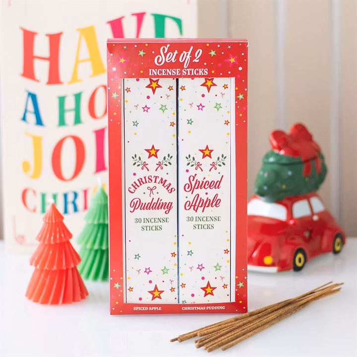 Innehåll: 2 paket rökelsepinnar (Spiced Apple & Christmas Pudding), 30 pinnar av varje sort.