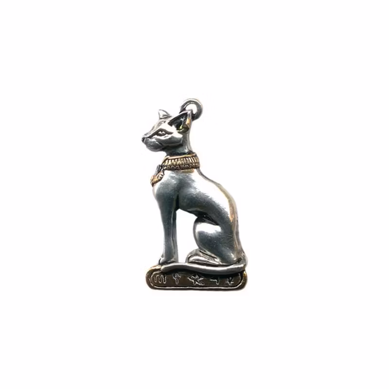 I forntida Egypten offrade människor små skulpturer av katter till solgudinnan Bast i hennes tempel i staden Bubastis för att få hennes välsignelse som gudinna av musik, dans, kärlek och nöje. Om du bär denna hängsmycke kan du öka känslan av kärlek och lycka i ditt liv.