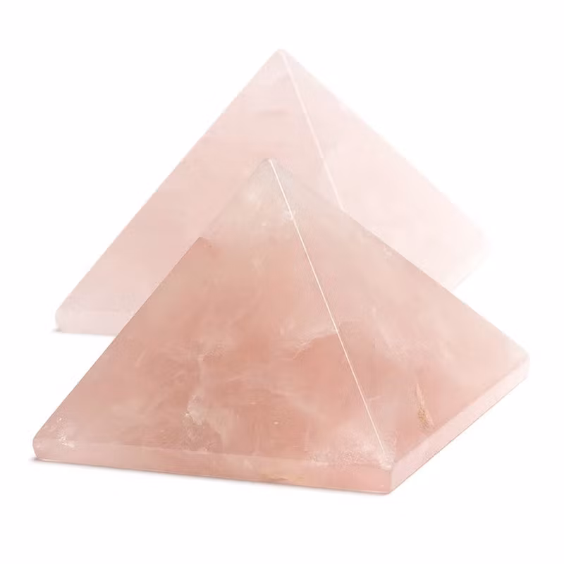 Vackra pyramider av Rosenkvarts. Kvalitet: hög till mycket hög AA+. Mått: Bas: ca. 45 - 60 mm. Höjd ca. 40 - 50 mm. Ursprung: Madagaskar