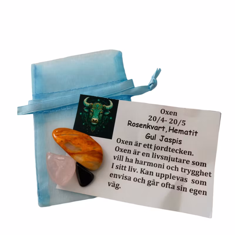 Stjärnteckenpåse med Rosenkvarts, Hematit, Gul Jaspis